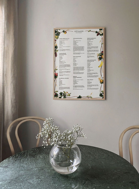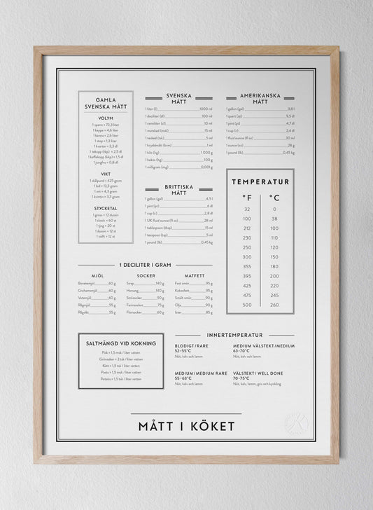 Hos Kunskapstavlan® hittar du tavlor med måttenheter, husmorsknep, men även en kökstavla med innertemperaturer, kryddväxter eller glas. Dessutom har vi lyft ut våra populära tavlor och posters till köket och gjort dem till Mini prints i A5. Fyll ut en befintlig tavelvägg, pryd kylskåpet, dekorera skafferiet eller skapa en egen tavelvägg av köksposters. Vill du ha tips på hur du kan hänga upp dina kökstavlor, besök vår Instagram för inspirerande bilder. Tagga gärna ditt köp med #Kunskapstavlan så vi får se hur du dekorerar ditt hem.